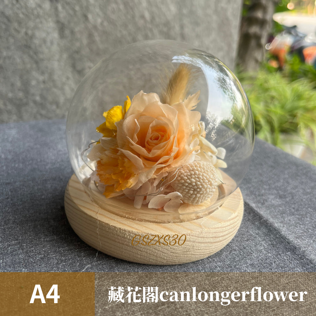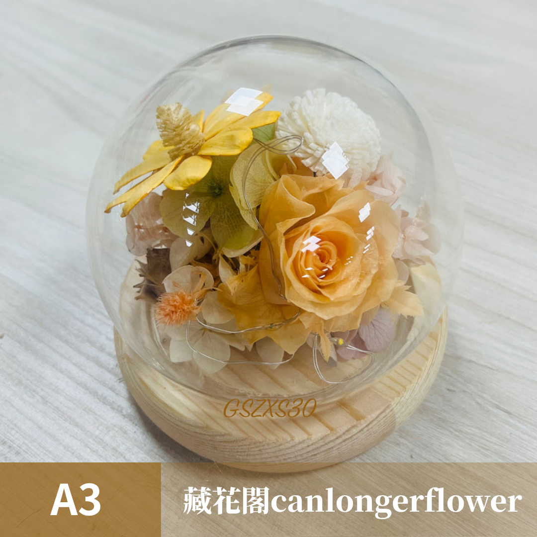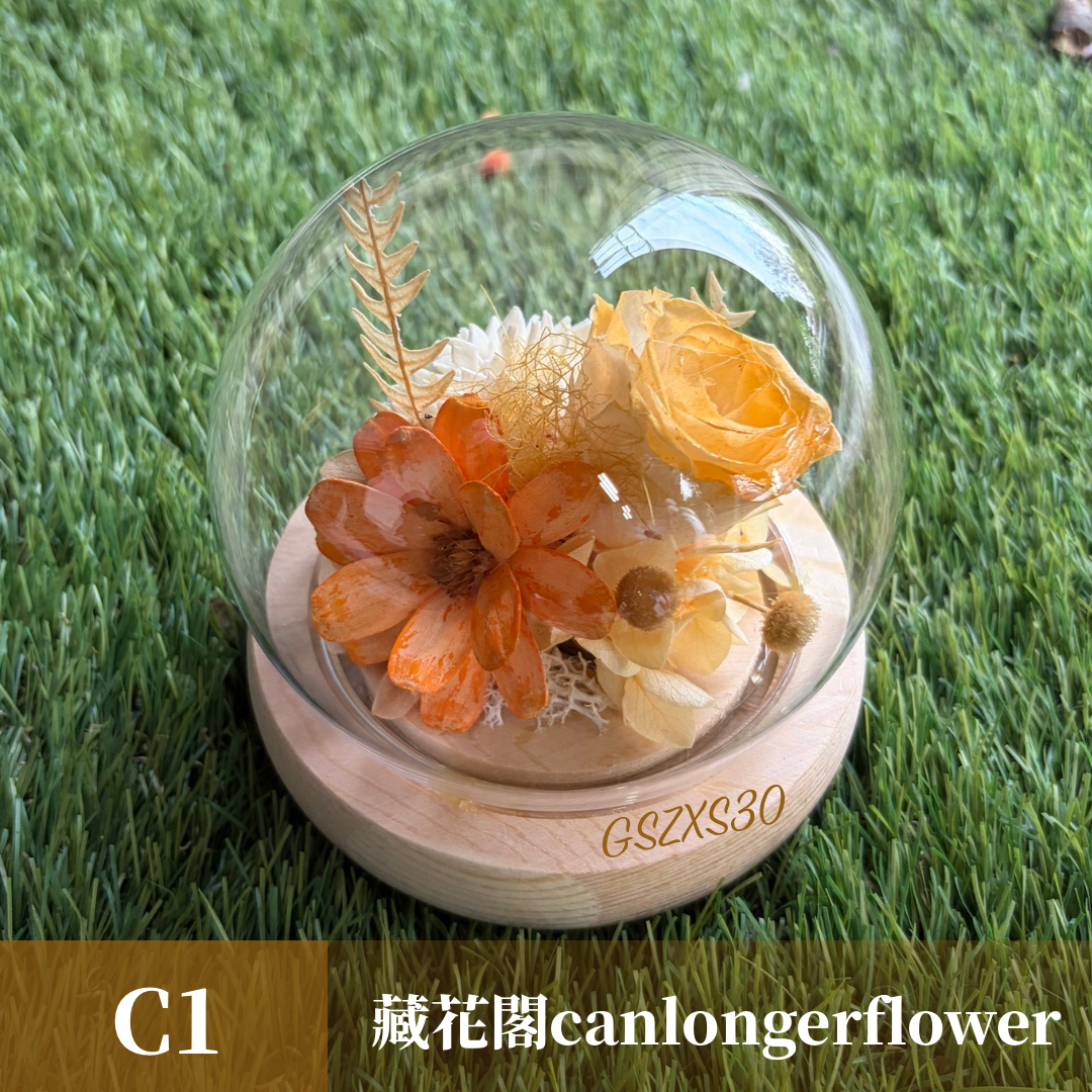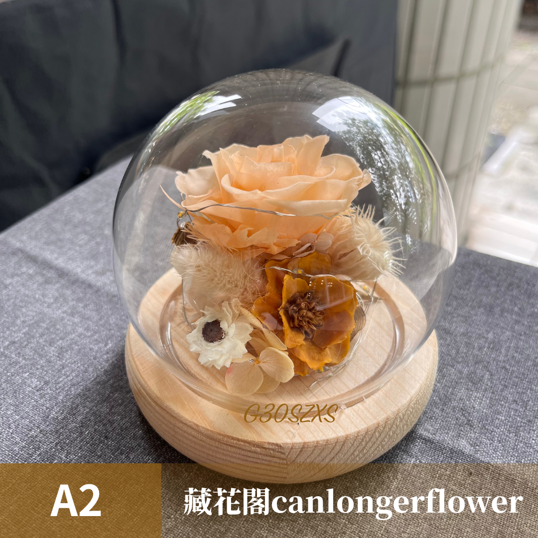 GSZXS30 橘色系永生玫瑰罩盅XS(帶燈)
