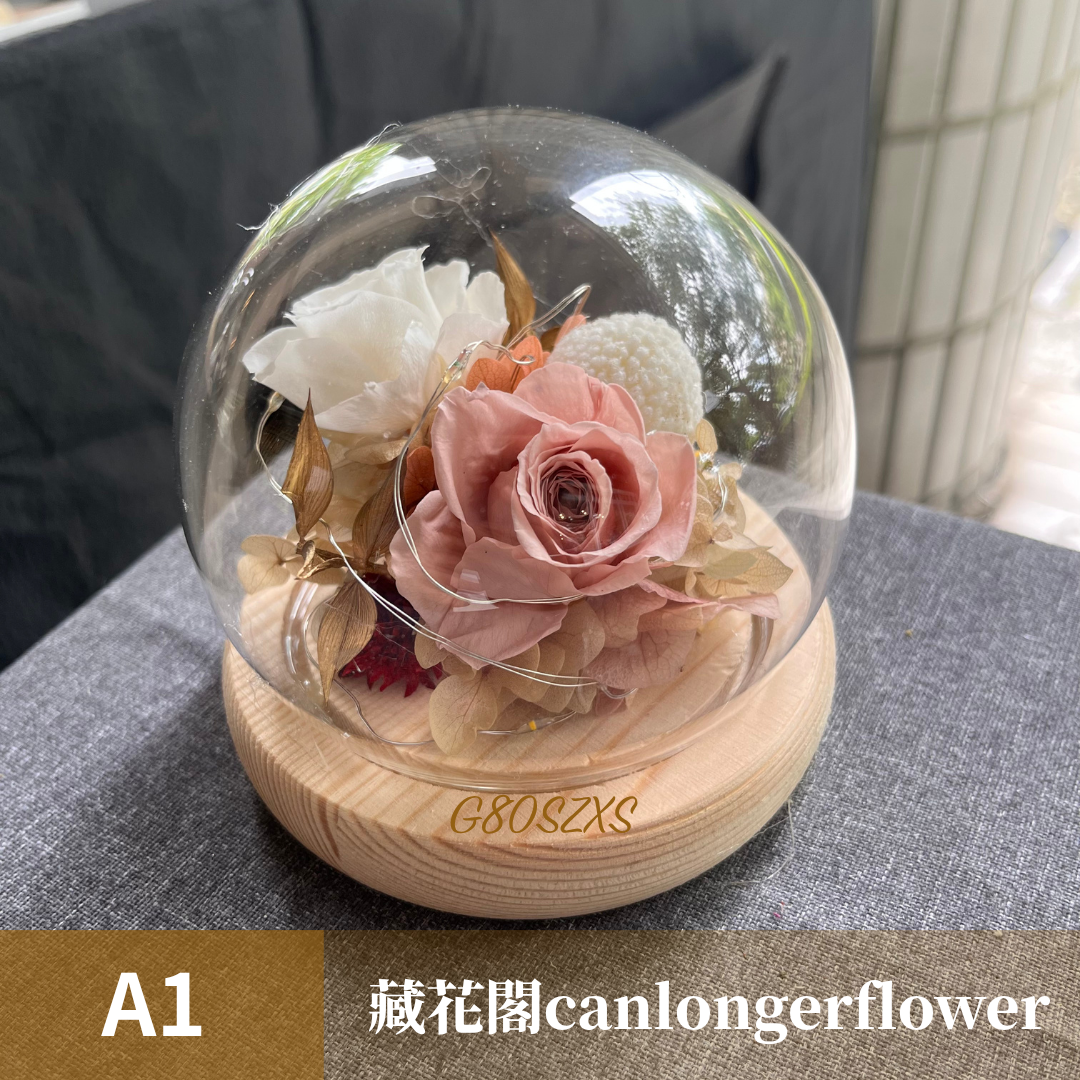 GSZXS80 大地色系永生玫瑰罩盅XS(帶燈)