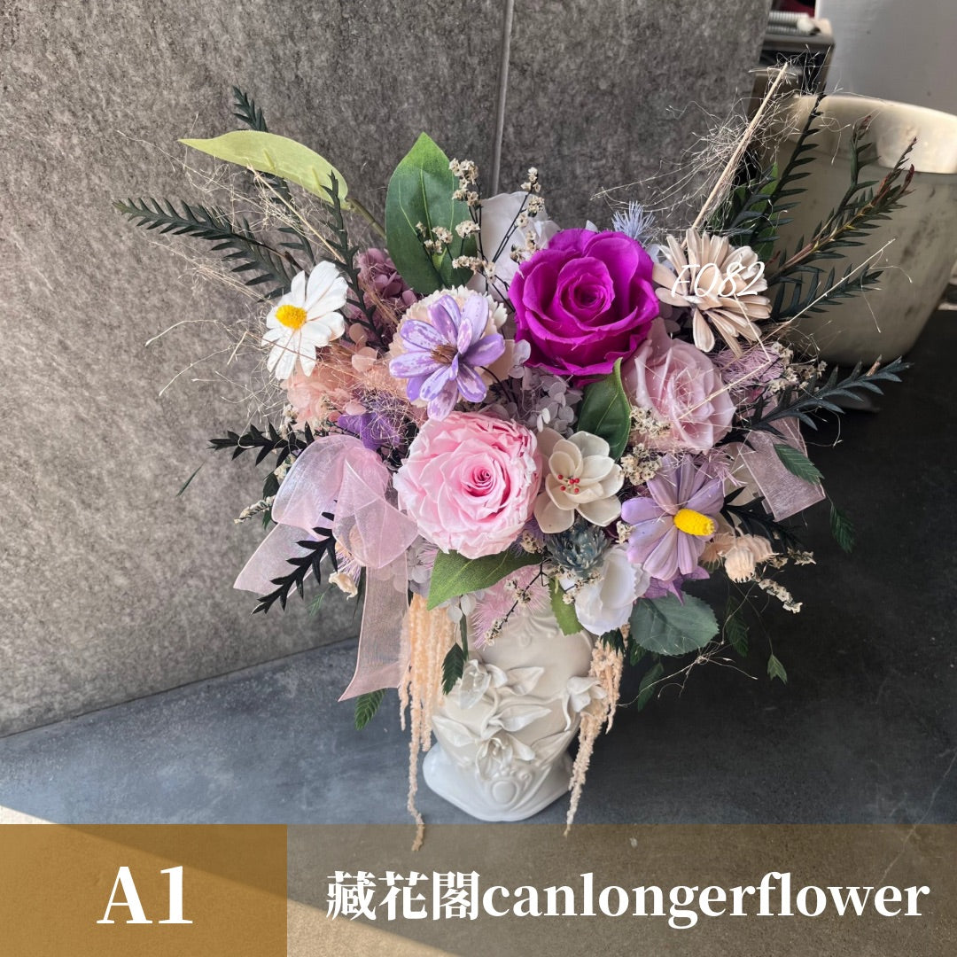 Gift-F082 粉紫色系永生盆花 粉色 紫色 盆花 開幕 送禮 慶賀 擺飾 裝飾品