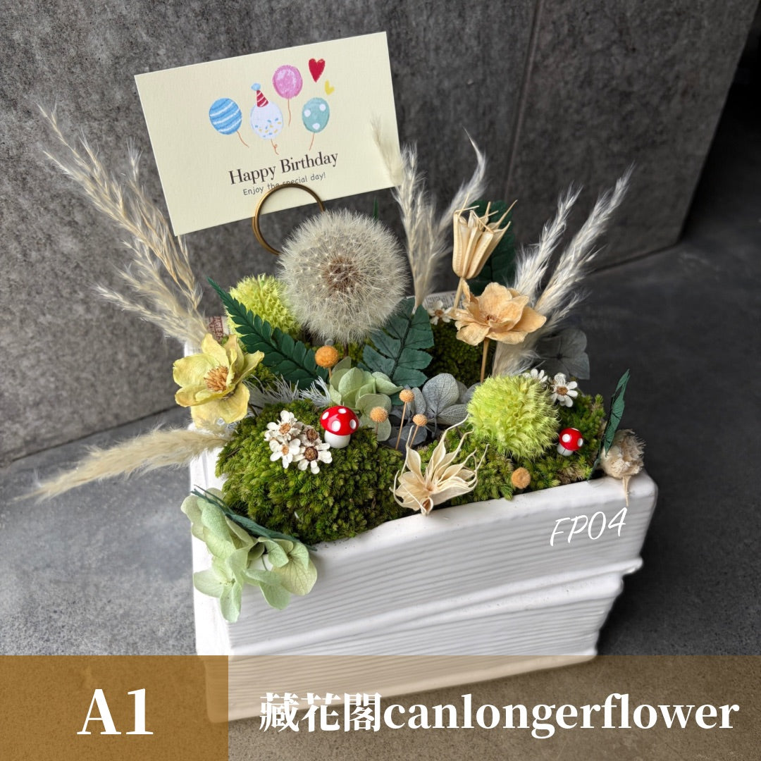 Gift-FP04 可愛精靈森林 綠色系永生蒲公英書本造型陶瓷盆花 綠色 蒲公英 盆花 開幕 送禮 慶賀 擺飾 裝飾